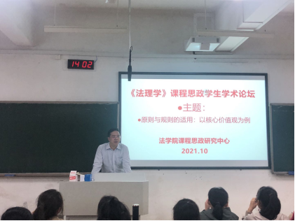 为了培育和弘扬社会主义核心价值观,贯彻中国特色社会主义法治理论,不断推进《法理学》课程思政建设,2021年10月26日下午,法学院课程思政研究中心主办的《法理学》课程思政学生学术论坛顺利举行。《法理学》课程负责人彭中礼教授指导了学术论坛并做了深刻点评,中南大学法学院2107、2108班的全体学生参与了本次学术论坛。