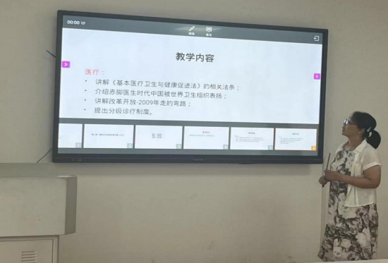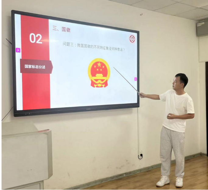 程能老师讲授的是如何运用法律法规规范使用国旗、奏唱国歌,希望不断提升文化自信、民族自信,增强学生的爱国主义情感。