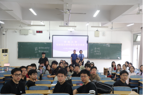 (图三:王魁华律师正在为同学们进行律师职业行为规范的讲解和分享)