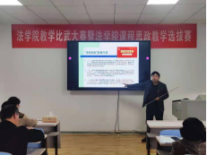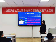 4月21日下午,在文法楼401教室联合举办法学院教学比武大赛暨法学院课程思政教学选拔赛。本科教学督导陈立新教授、李满春教授、吴玲英教授受邀担任评委,学院6名教师参加比赛,李娜老师主持比赛。