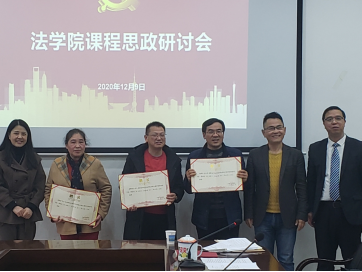 2020年12月9日下午4:00,法学院在文法楼210开展“课程思政”专题研讨会。本科生院领导金一粟主任、曹丹、法学院院长许中缘教授、副院长何炼红教授、学院督导及教师出席本次研讨会。会议由学院副院长彭中礼教授主持。