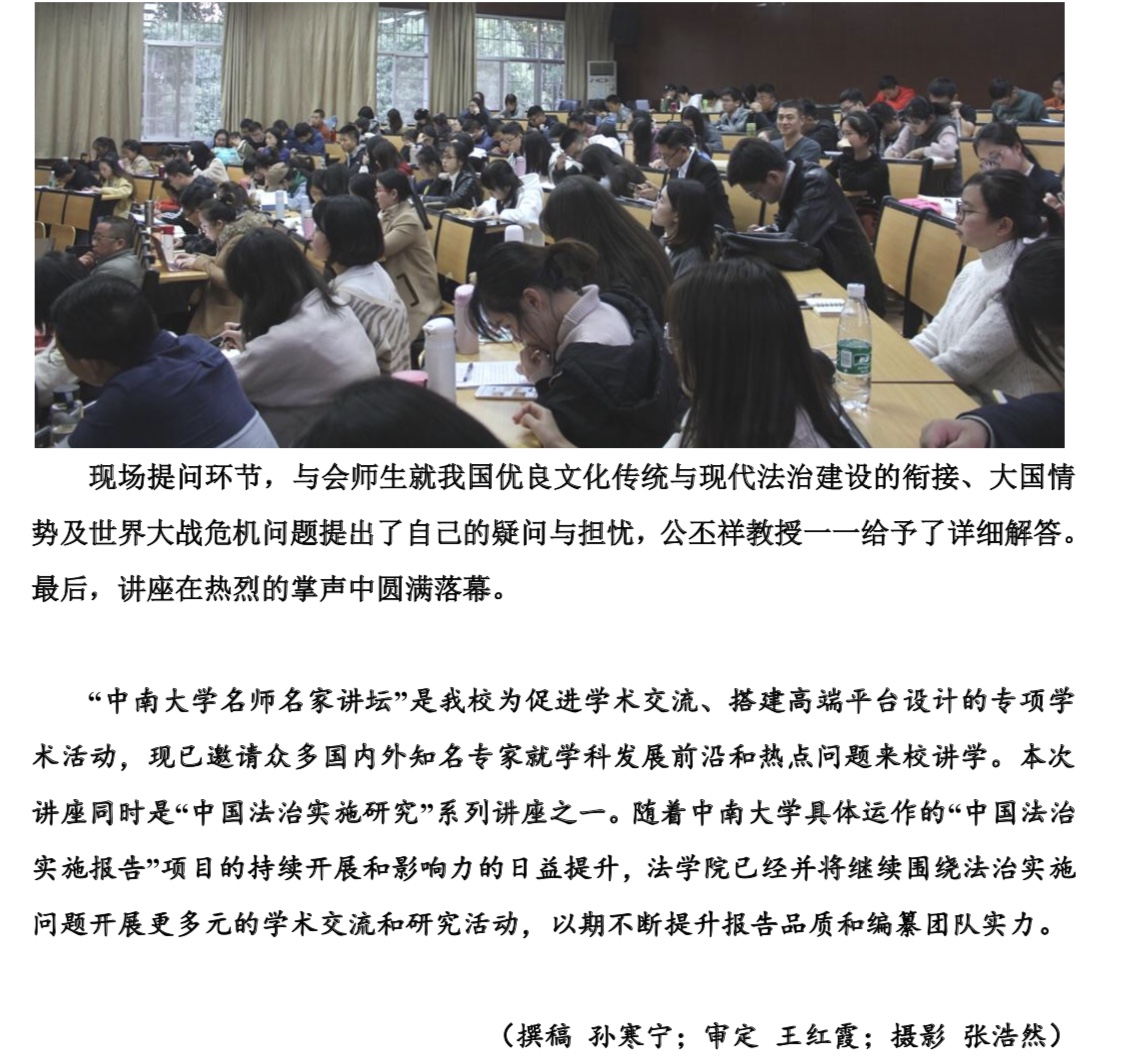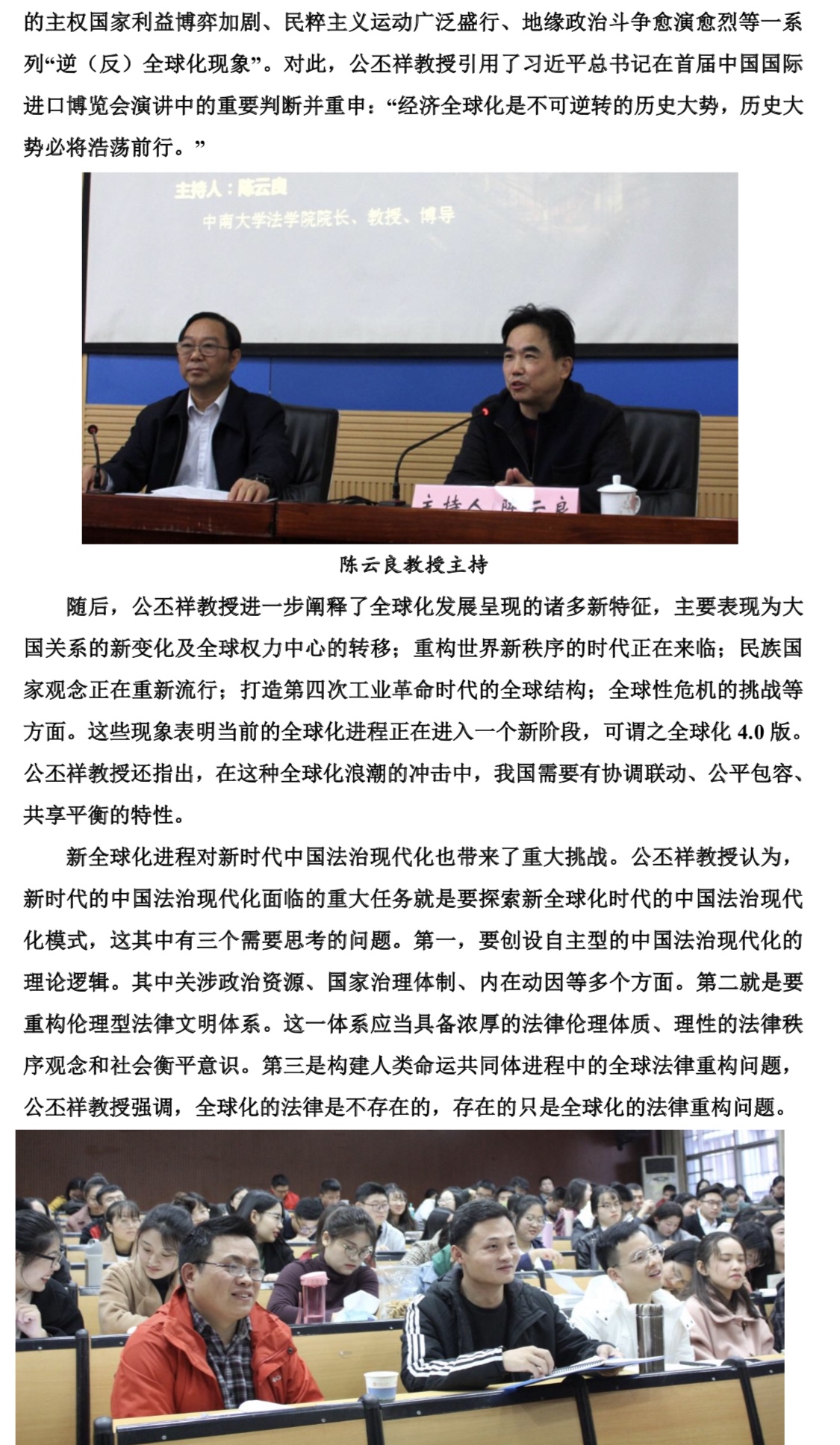 著名法学家公丕祥教授做客中南 详述新时代下的中国法治现代化