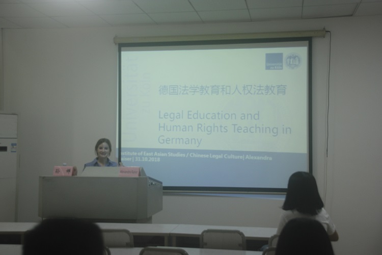 2018年10月31日下午,德国科隆大学中国法律文化系研究助理、博士生Alexandra Kaiser受邀作“德国法学教育和人权法教育”的专题讲座。讲座由中南大学法学院博士生孙婵主持,中南大学法学院部分研究生和部分本科生聆听了本次讲座。