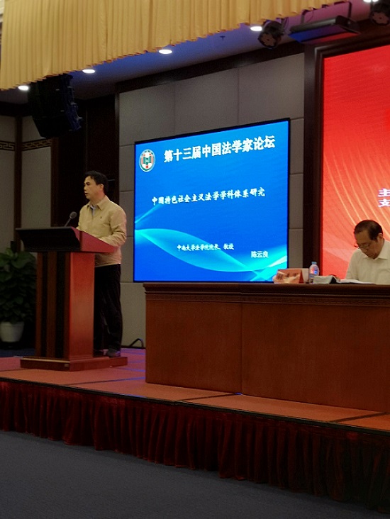 2018年9月26日,第十三届中国法学家论坛在北京成功举办。中国法学会会长王乐泉,中央政法委秘书长、中央全面依法治国委员会办公室副主任陈一新,中国法学会党组书记、常务副会长陈冀平出席并讲话。司法部副部长熊选国、全国人大常委会法工委副主任许安标,中国法学会副会长鲍绍坤、张鸣起、张文显、王其江、张苏军、徐显明、郎胜、江必新、孙谦、朱孝清、任海泉、李林、王利明、黄进出席论坛,主持有关环节或作主旨演讲。朱景文、李德顺、何勤华、顾培东、周叶中、林嘉、周汉华,以及我院院长陈云良围绕贯彻落实习近平总书记全面依法治国新理念新思想新战略作专题演讲。