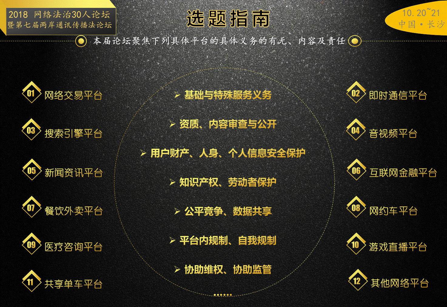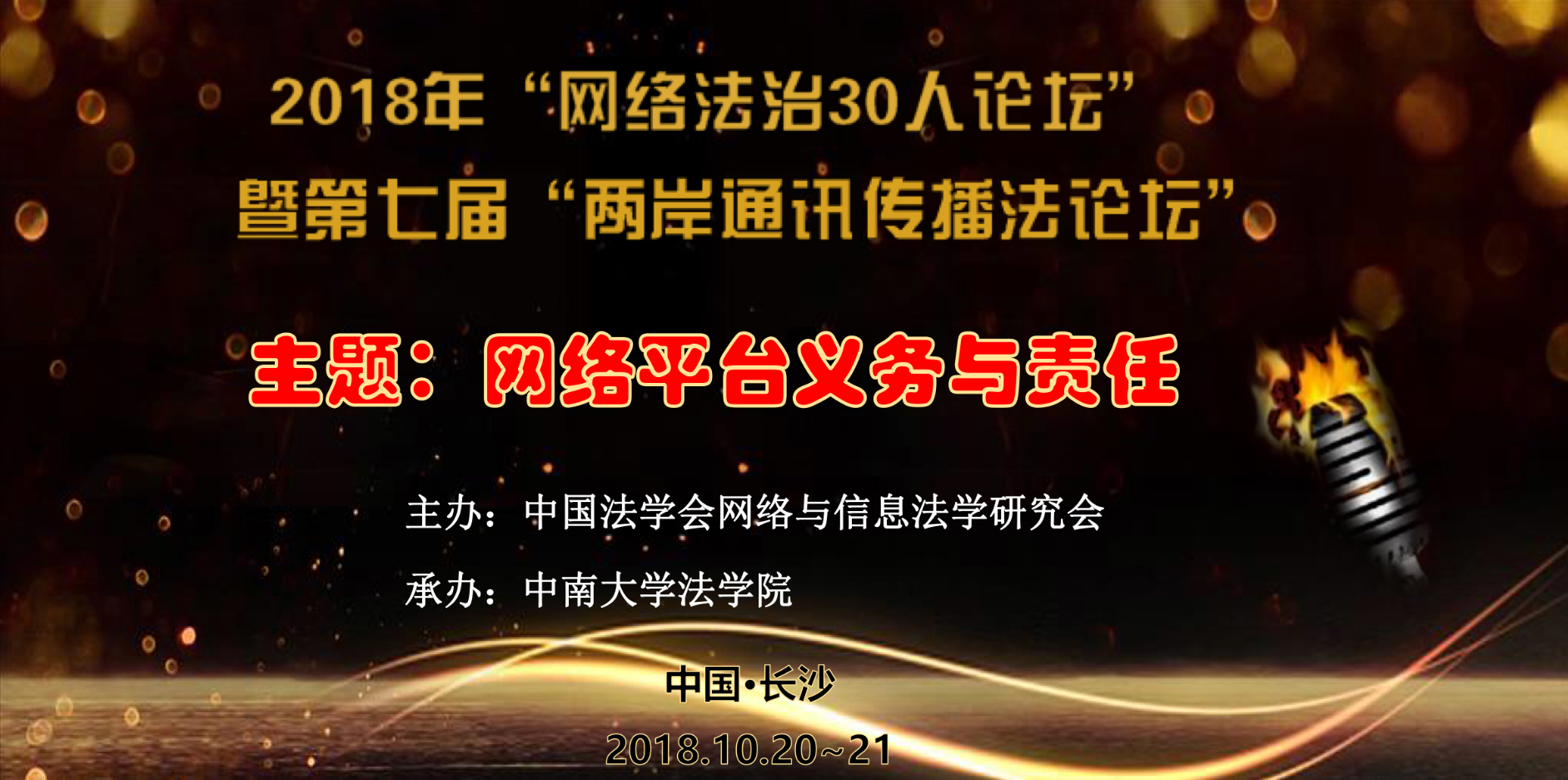 第三届“网络法治30人论坛”将与第七届“两岸通信传播法论坛”联合召开,“网络法治研究方阵单位”暨“两岸通信传播法论坛”秘书处单位中南大学法学院承办,定于2018年金秋在湖南长沙举行。