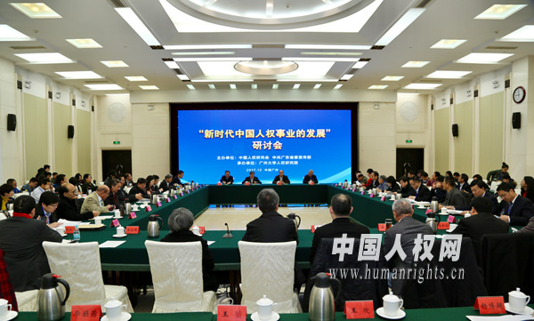 2017年12月19日,由中国人权研究会和中共广东省委宣传部主办、广州大学人权研究院承办的“新时代中国人权事业的发展”研讨会在广州举行。来自中共中央宣传部、最高人民法院、国务院新闻办、外交部、教育部、国家卫计委、人力资源与社会保障部、人民日报社、中共中央党校、中国社科院、中国人权研究会、北京大学、中国人民大学、武汉大学、南开大学、复旦大学、南京大学、中南大学、四川大学、河海大学、中国政法大学、西南政法大学、西北政法大学、深圳大学、广州大学、东北财经大学、云南大学、广西民族大学、西北民族大学、昆明理工大学等单位的负责同志和专家学者50余人参加会议,旨在以党的十九大精神为指导,深入学习阐释习近平新时代中国特色社会主义思想的丰富人权内涵,为新时代我国人权事业的发展提供理论支撑。