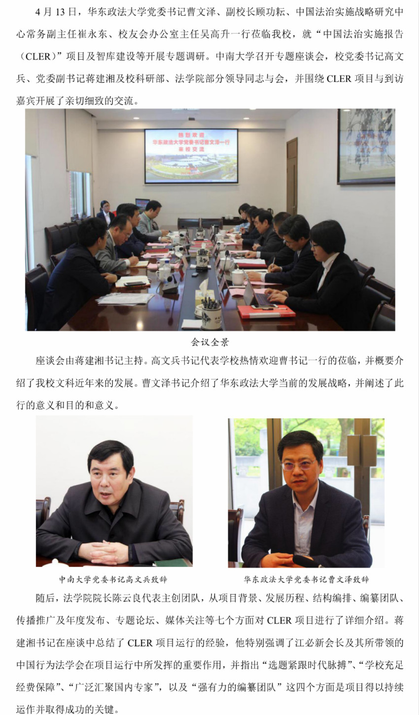 华东政法大学曹文泽书记一行调研“中国法治实施报告”项目