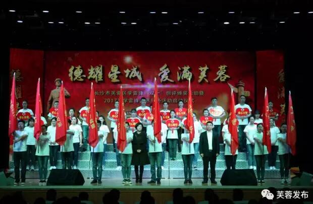 随后,出席活动的领导为十大爱心系列活动志愿服务小分队授旗。省文明办副主任李力明宣布芙蓉区2017年学雷锋志愿服务活动正式启动。活动还以VCR的形式再现了优秀志愿服务个人和项目的感人事迹:荷花园街道退休老党员池凤英多年来,从调解邻里纠纷,到照顾小孩、看守门户,只要一通电话,热心的她总是“逢叫必到”;东屯渡派出所农科村社区民警刘头仔坚持每天早晨7点到社区,把从群众中了解到的情况和要做的事及时记录下来,不到两年时间已经记满了4个本子;常青树老年公寓执行院长叶小兰,从照顾老人翻身、洗漱到排便、按摩,不怕脏,不怕累……