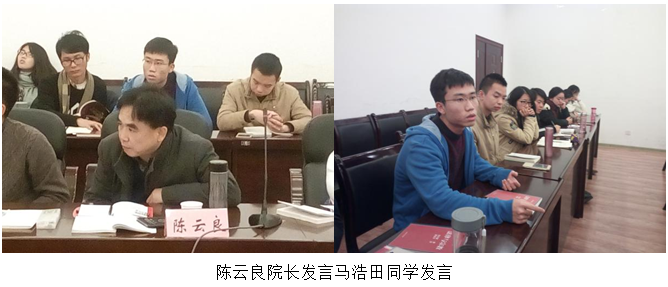 报告完毕,杨清望老师对各位同学的报告一一点评,并向同学们分享了读书的三点经验:第一,读一本书,应当尊重文本,尊重它的论题,尊重它的脉络,不要轻易评判它的好坏。第二,要结合文本,打通理论和现实,不要在读书中丢失自己的意义,还要注意解读的角度。第三,作为法学学生,我们的首要任务是解释世界,而不是改造世界。解释清楚以后,才有可能改造。最好的读书方法,是跳跃文本本身去讲述,梳理文章脉络,在它的基础上再做一点点补充解释。主持人毛俊响老师也邀请陈云良院长对于本期读书会进行点评。陈院长说:“本次会议讨论深入,效果很好,但可惜很受限于时间。我们院能有这么多同学参与读书会是一件很好的事情,如果大家继续坚持下去,读到四年级,我相信我们法学院一定会产生一批优秀的法律人才。”