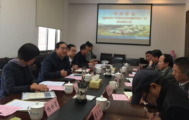 2016年11月18日,国家知识产权局条法司宋建华司长一行,在湖南省知识产权局肖祥清局长的陪同下,莅临中南大学开展《专利法》修订专题调研,听取高校和企业关于专利运用和保护方面的建议。