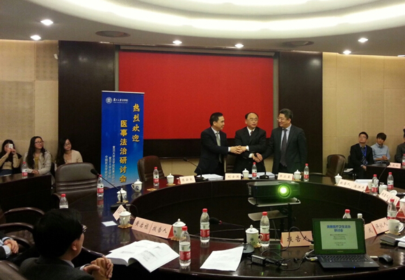 经二年前我院陈云良教授的倡议和一年多的准备,2015年4月19日,在复旦大学“完善医疗卫生法治研讨会”的闭幕式上,复旦大学医事法研究中心刘士国教授、清华大学卫生法研究中心申卫星教授、中南大学医疗卫生法研究中心陈云良教授共同签署了《关于发起成立“医疗卫生法治协同创新中心”的意向协议书》。三方就医疗卫生法治的理论研究、人才培养、社会服务、健康文化传承等方面的协同创新达成合作意向。