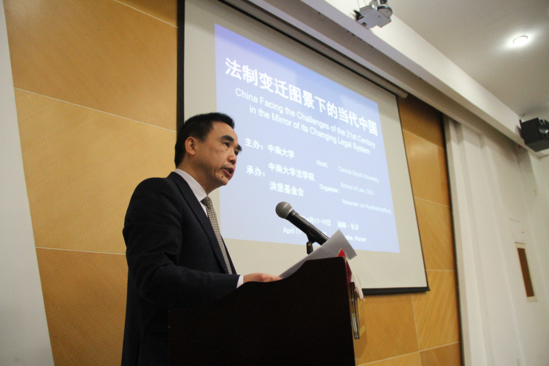 4月17日上午的论坛开幕式上,中南大学法学院杨开湘教授主持,中南大学副校长张灼华教授发表了热情洋溢的欢迎词,洪堡基金中国学术大使、北京大学王世洲教授介绍了洪堡基金会的精神,最后中南大学法学院院长陈云良教授向来宾介绍了中南大学法学院近年来的发展情况。