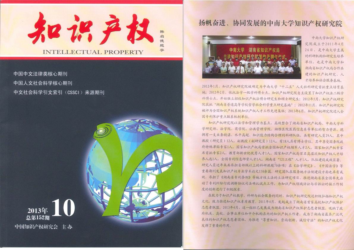 《知识产权》杂志2013年第10期专题介绍中南大学知识产权研究院