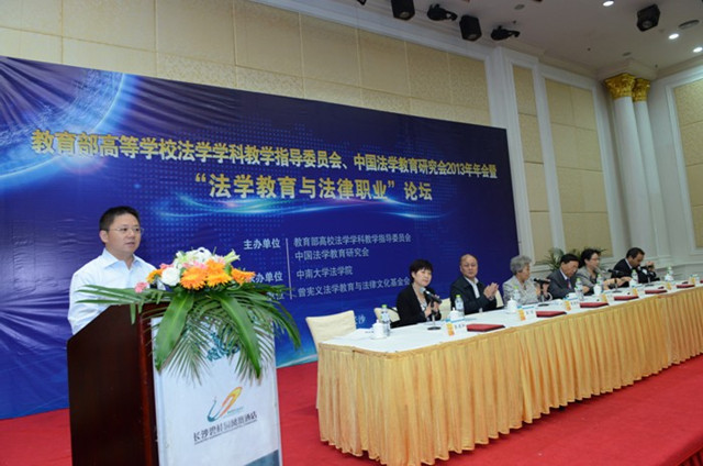 为了贯彻实施《国家中长期教育改革发展规划纲要》对法律人才培养的要求,进一步探讨教育部卓越法律人才教育培养计划与法律人才培养模式改革,2013年10月19至20日,教育部高校法学教育指导委员会、中国法学教育研究会2013年年会暨“法学教育与法律职业”论坛在长沙召开。本次会议由教育部高等学校法学学科教学指导委员会、中国法学教育研究会主办,中南大学法学院承办,曾宪义法学教育与法律文化基金会赞助协办。来自全国230余所高校的校长、院长和专家学者350余人出席了年会。本次年会还特别邀请了美国杜兰大学等7所法学院院长参加,加强了中美法学教育的交流。