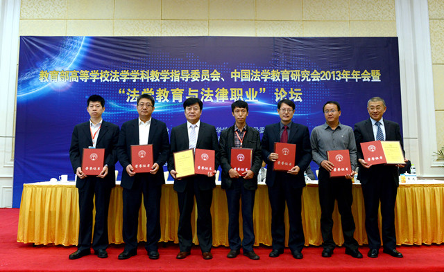 开幕式中还进行了“中国法学教育优秀成果奖”颁奖仪式,中国法学教育研究会秘书长叶秋华教授就“中国法学教育成果奖”评选工作作了说明,并宣读了获奖名单,中国政法大学刘坤轮,复旦大学法学院王伟,华中科技大学李红海等19人分别获得一、二、三等奖。在主席台就坐的领导嘉宾为获奖代表颁发了证书。