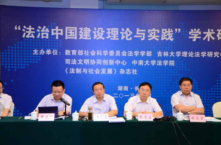 会议由教育部社会科学委员会法学学部主办,吉林大学理论法学研究中心和中南大学法学院共同承办。教育部社会科学委员会法学学部委员、国务院学科委员会法学学科评议组成员、教育部人文社会科学(法学)重点研究基地主任以及20余名特邀代表参会。我校常务副校长黄健柏,校长助理兼法学院教授蒋建湘,法学院党委书记王新平及法学院主持工作副院长陈云良等负责人应邀出席。