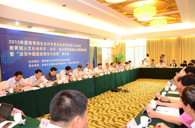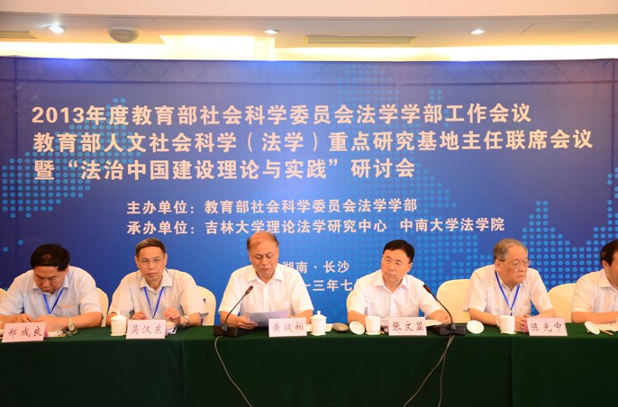 7月15日,2013年度教育部社会科学委员会法学学部工作会议、教育部人文社会科学(法学)重点研究基地主任联席会议暨法治中国建设理论与实践研讨会在长沙召开。会议主要议题是研讨并部署2013年度教育部社会科学委员会法学学部工作、部署2013年度教育部人文社会科学(法学)重点研究基地工作、研讨法治中国的理论与实践中的若干重大问题。