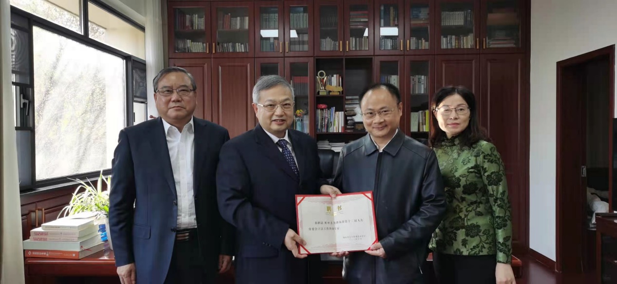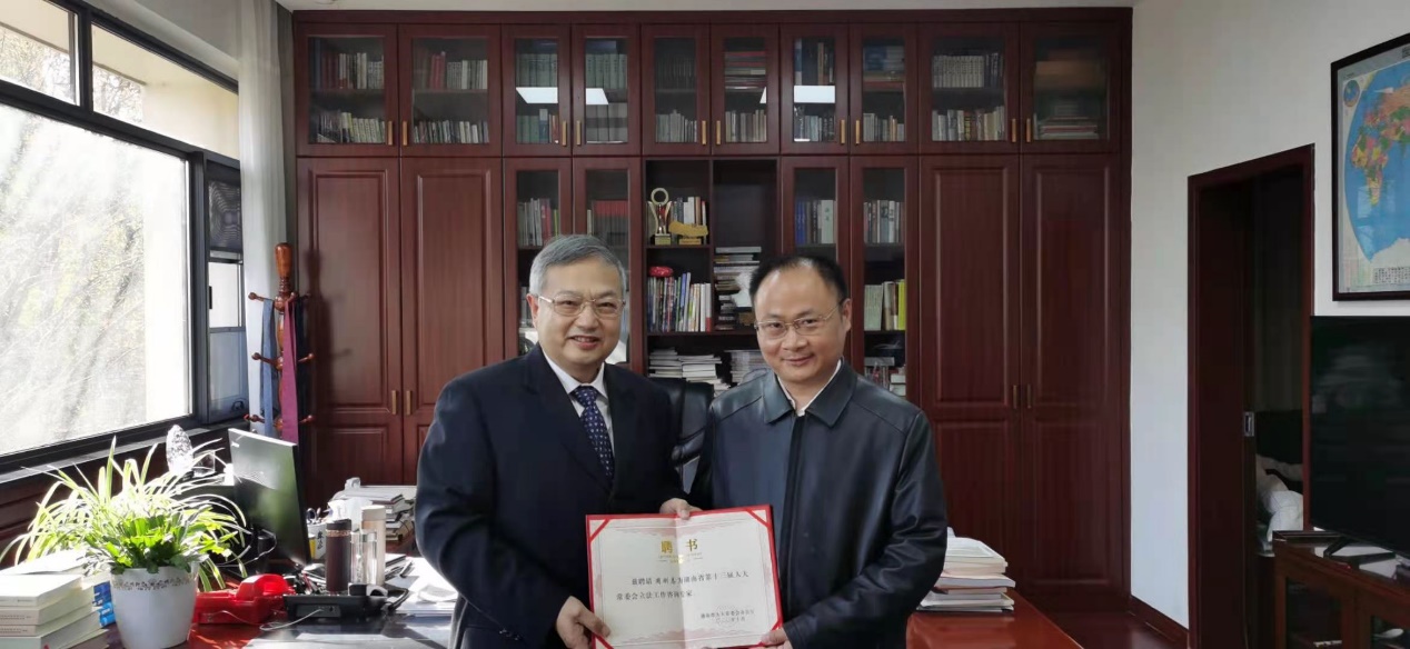 2021年1月19日,湖南省人大常委会党组副书记、副主任王柯敏为中南大学中国文化法研究中心执行主任周刚志教授颁发湖南省十三届人大常委会立法工作咨询专家聘书。