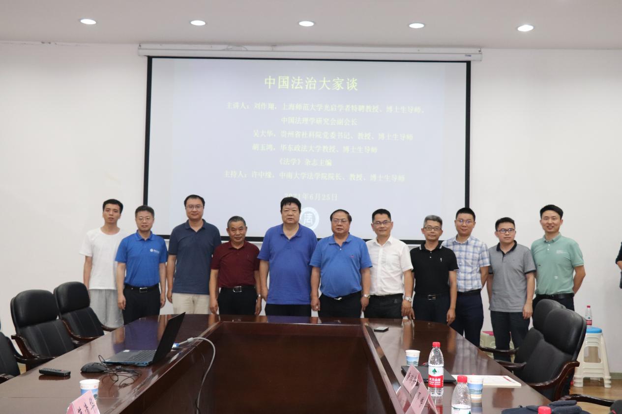 2021年6月25日晚,“中国法治大家谈”学术讲座在中南大学法学院210会议室成功举办。此次讲座是中南大学第二届交叉学科研究生创新论坛系列讲座之一,由上海师范大学光启学者特聘教授、博士生导师、中国法理学会副会长刘作翔,贵州省社科院党委书记、教授、博士生导师吴大华,华东政法大学教授、《法学》杂志主编胡玉鸿主讲,中南大学法学院院长、教授、博士生导师许中缘主持,此外参加此次讲座的还有中国政法大学法学院副院长雷磊教授,中南大学法学院王进文副教授,以及张新平副教授、蒋清华副教授等部分中南大学法学院师生。