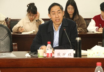 中南大学法学院院长许中缘教授代表中南大学法学院致辞。许中缘院长从人才建设、学科建设、科学研究、社会服务四个方面向与会领导汇报了法学院这几年的发展,他提出各位领导来法学院召开动员会,既是法学院学习的一个机会,也是法学院服务于法治湖南的一个重要契机。