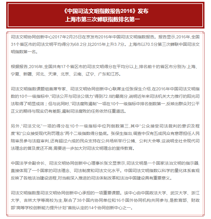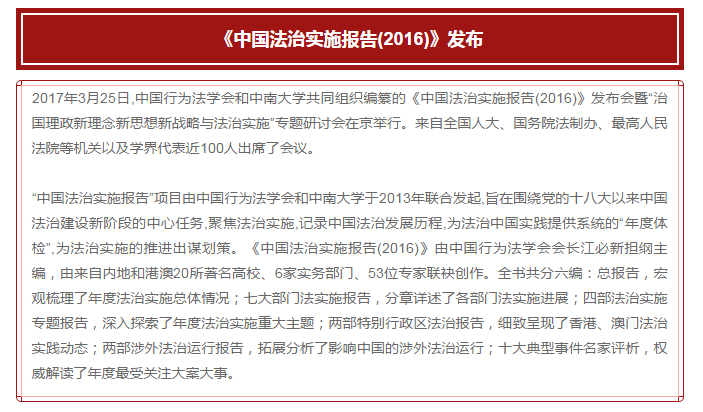 《中国法治实施报告2016》入选2017中国法学教育十大新闻