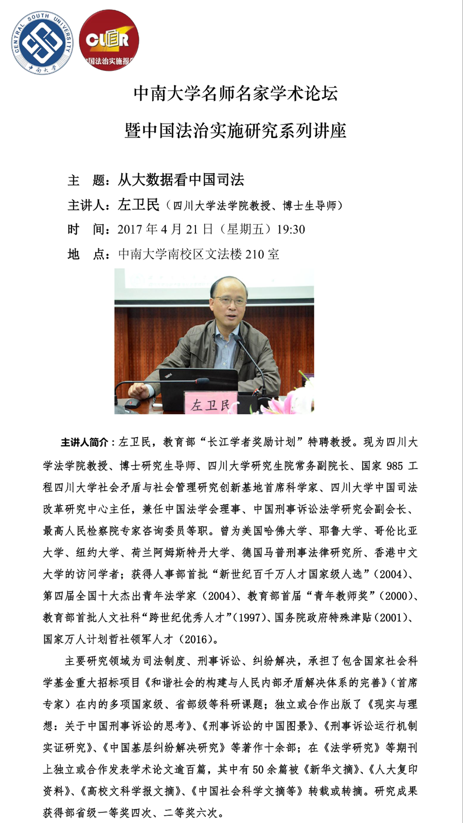 【中南大学名师名家学术论坛】左卫民:从大数据看中国司法