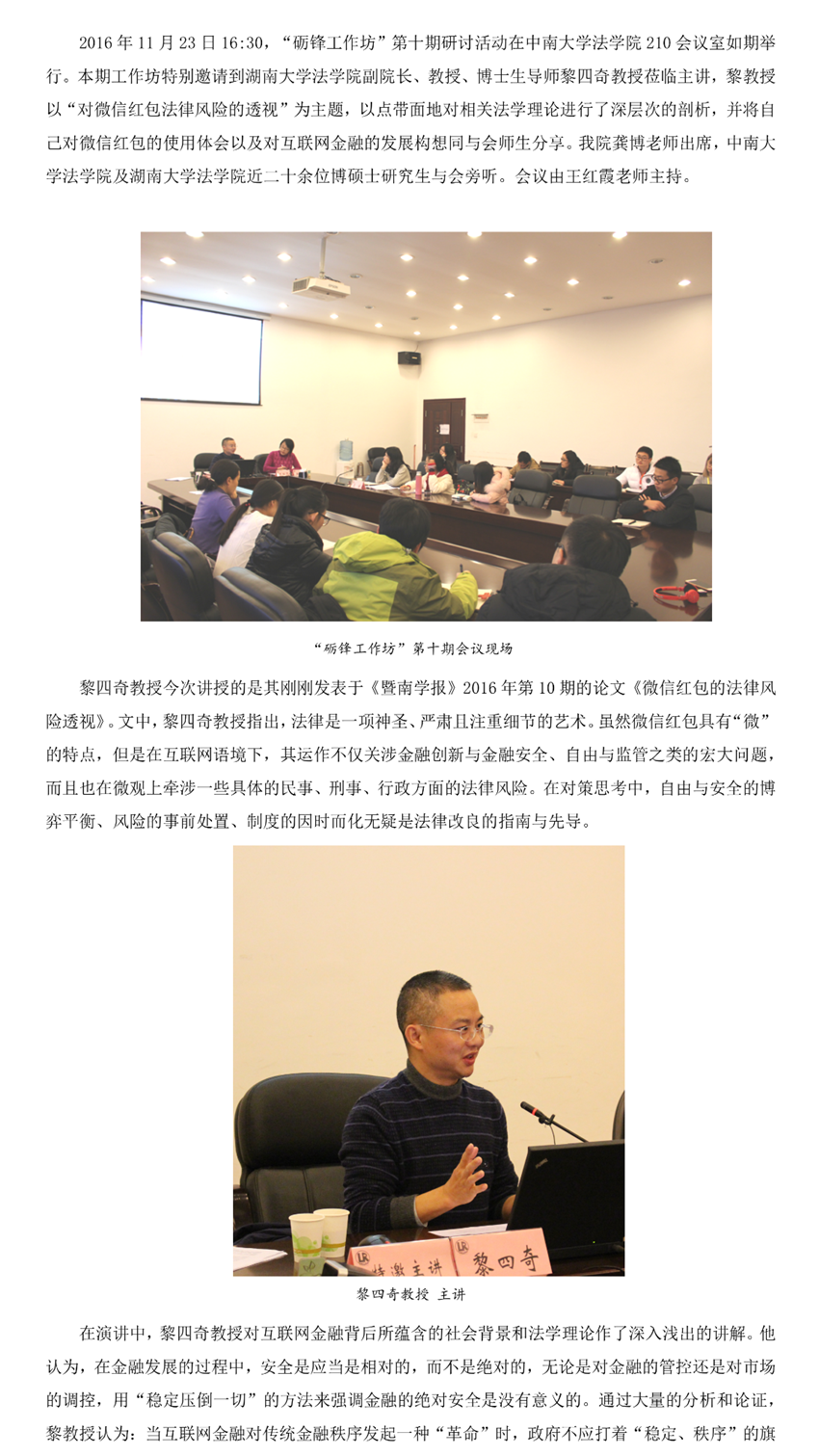 黎四奇教授做客“砺锋工作坊”,畅谈互联网金融监管之道