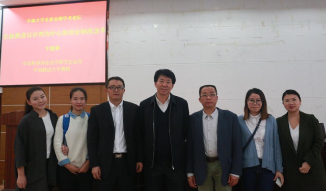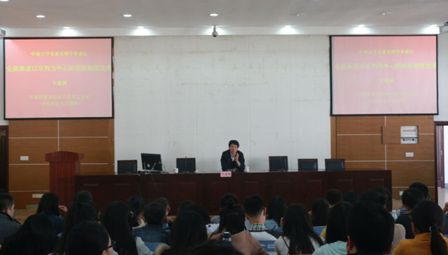2016年11月4日下午三点,中国刑事诉讼法学研究会会长、现任教育部人文社会科学重点研究基地中国政法大学诉讼法学研究院院长、国家2011计划司法文明协同创新中心首席科学家卞建林教授莅临中南大学名师名家学术论坛,为法学院师生带来《全面推进以审判为中心的诉讼制度改革》为主题的学术讲座。中南大学法学院院长陈云良教授致欢迎词,诉讼法学研究所杨开湘教授主持讲座。法学院唐东楚、伍浩鹏、樊长春等多位老师及本科生、硕士研究生与博士研究生200余人认真聆听了此次讲座。
