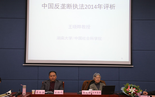 2015年1月14日,著名竞争法专家王晓晔教授应邀莅临我院,在123会议室发表题为“中国反垄断法2014年执法风暴评析”的学术讲座。著名国际法专家、中国社会科学院研究院陶正华教授作为特邀嘉宾一同出席。讲座由经济法所所长李国海教授主持。法学院副院长刘继虎教授、民商法所余卫明教授等学院老师以及部分博士、硕士研究生及本科生聆听了本次讲座。