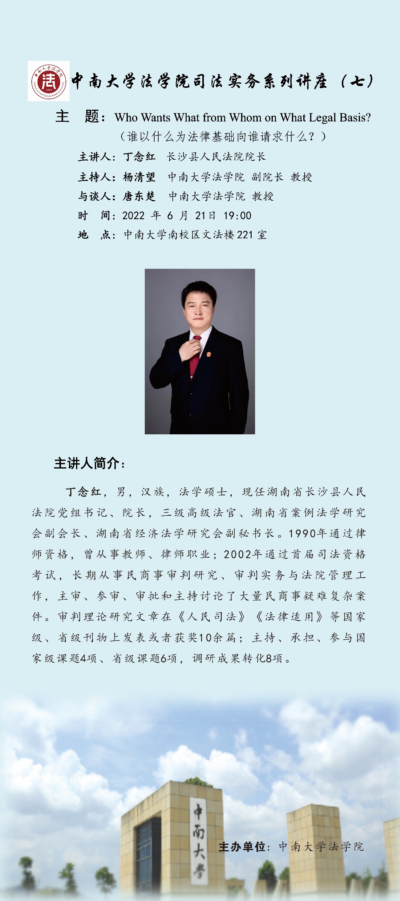 【讲座预告】丁念红:谁以什么为法律基础向谁请求什么?
