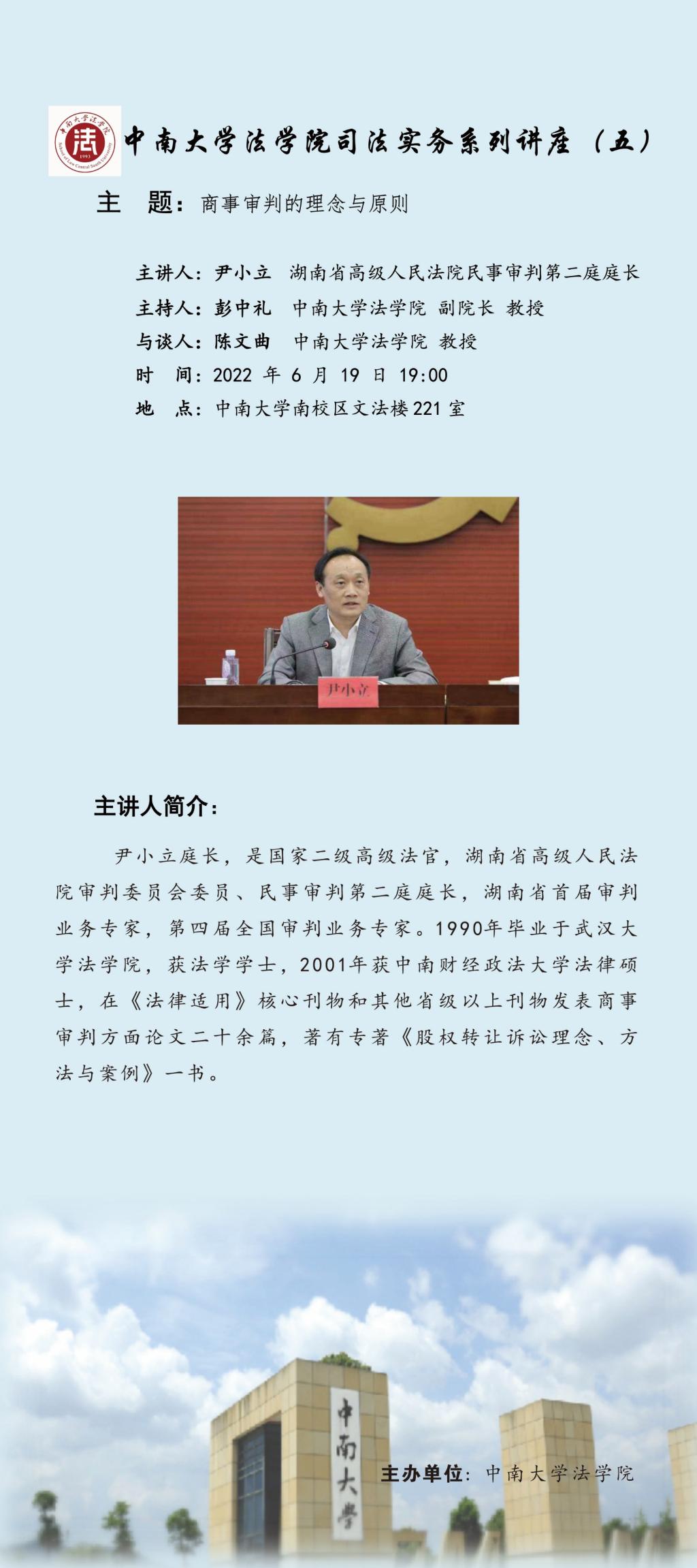 【讲座预告】尹小立:商事审判的理念与原则