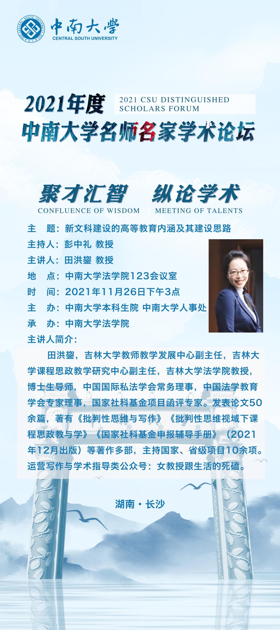 【名师名家讲座预告】田洪鋆:新文科建设的高等教育内涵及其建设思路