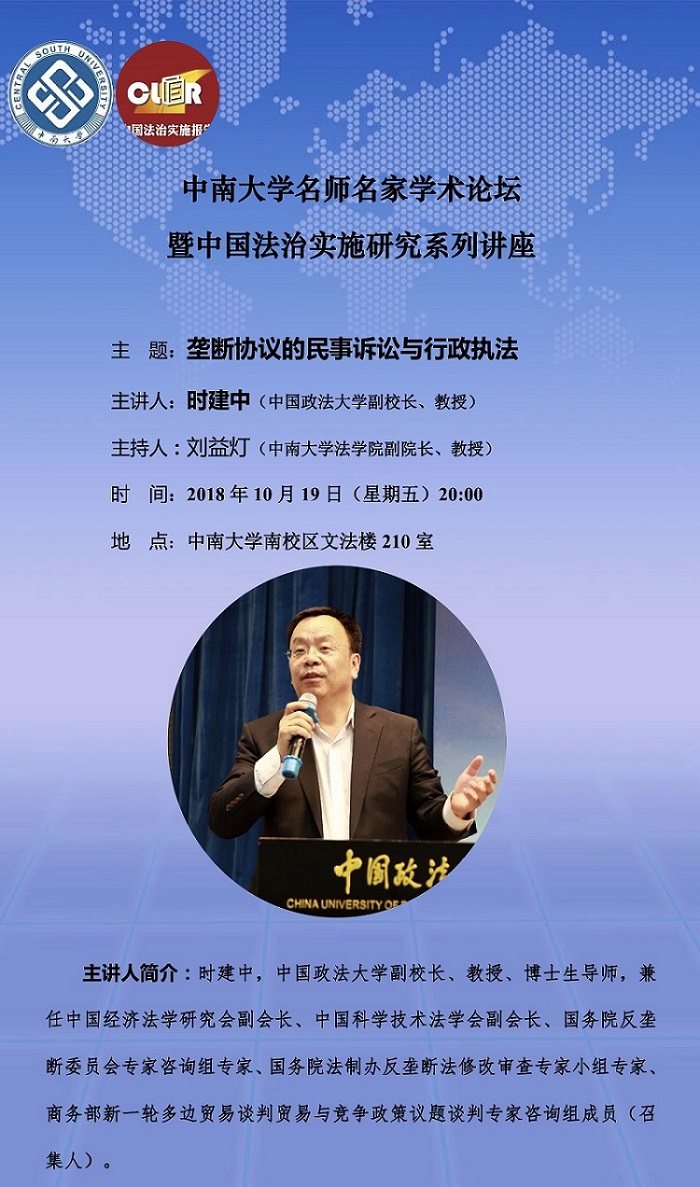 【中南大学名师名家学术论坛】时建中:垄断协议的民事诉讼与行政执法