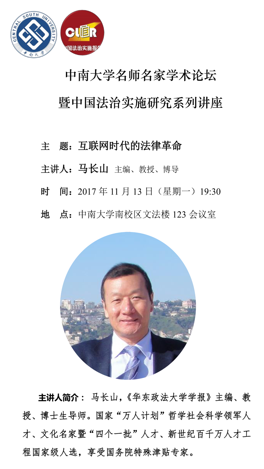 【中南大学名师名家学术论坛】马长山:互联网时代的法律革命