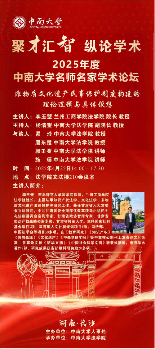 【讲座预告】李玉璧:非物质文化遗产民事保护制度构建的理论逻辑与具体设想