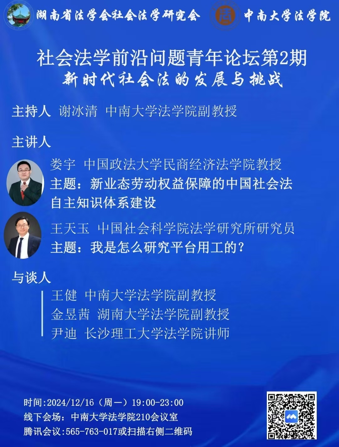 【讲座预告】社会法学前沿论坛第2期:新时代社会法的发展与挑战