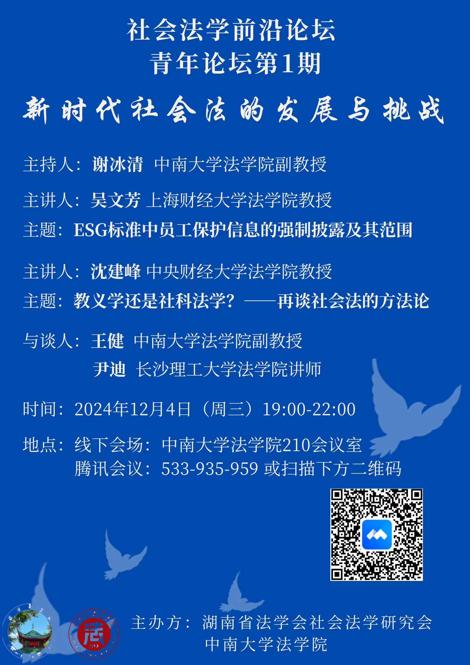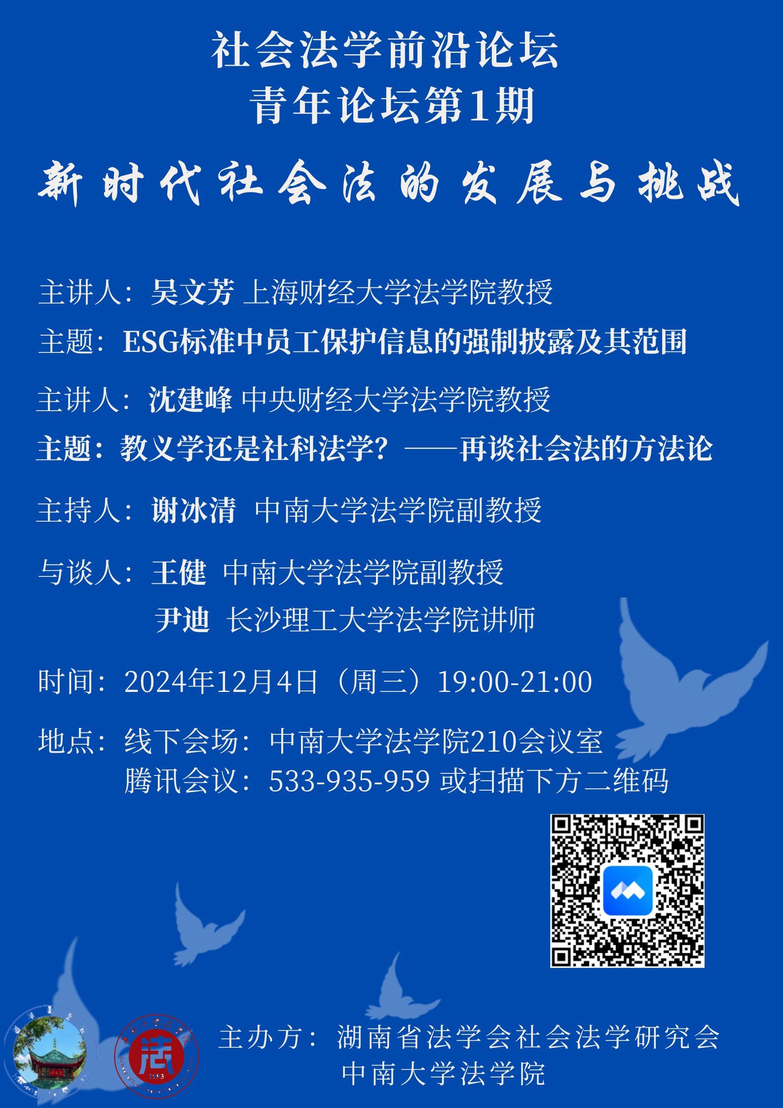 【讲座预告】社会法学前沿论坛:新时代社会法的发展与挑战