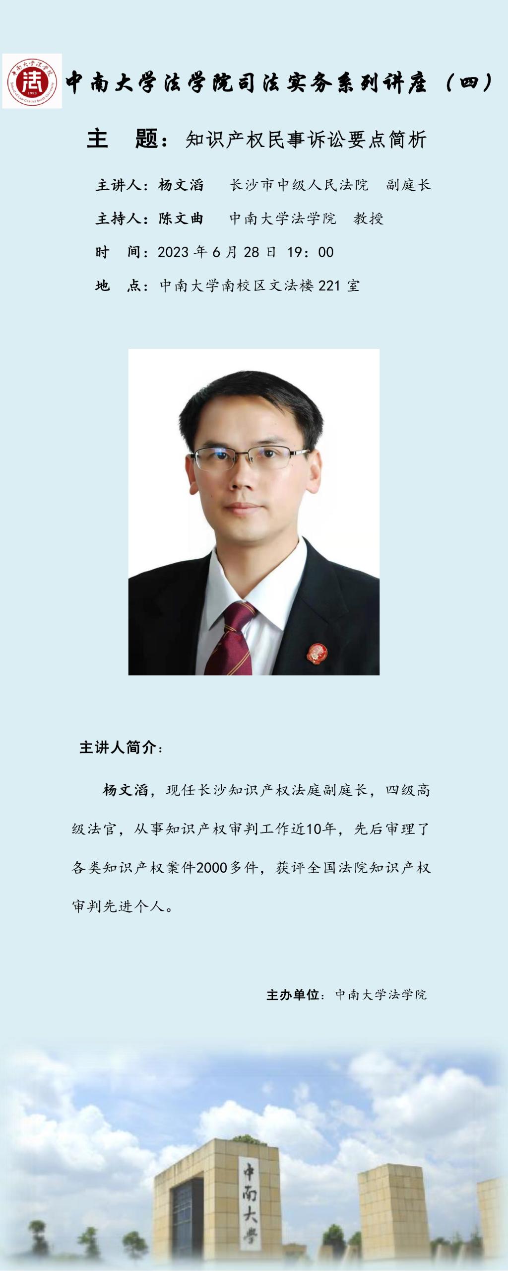 【讲座预告】杨文滔:知识产权民事诉讼要点简析