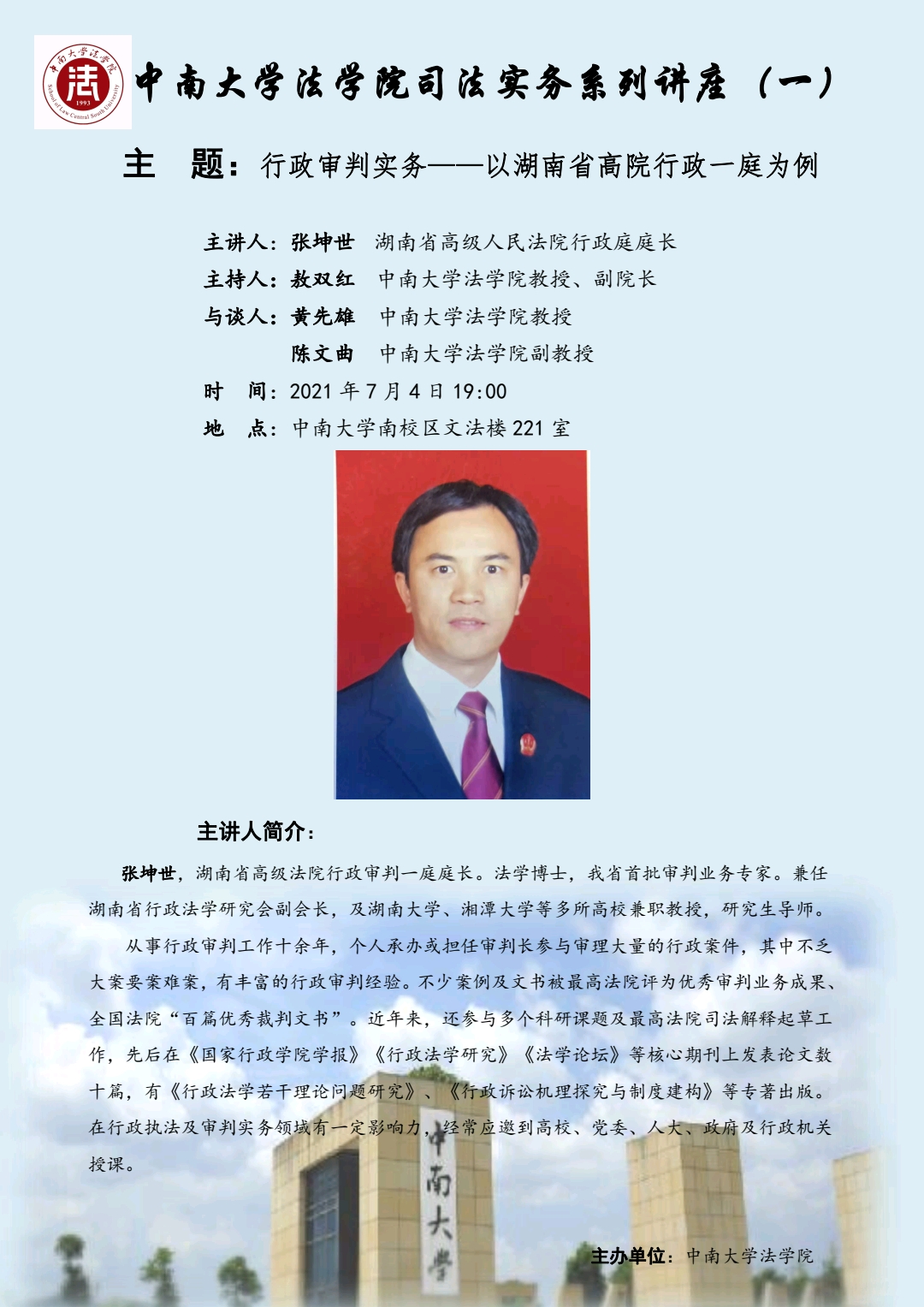 【讲座预告】张坤世:行政审判实务——以湖南省高院行政一庭为例