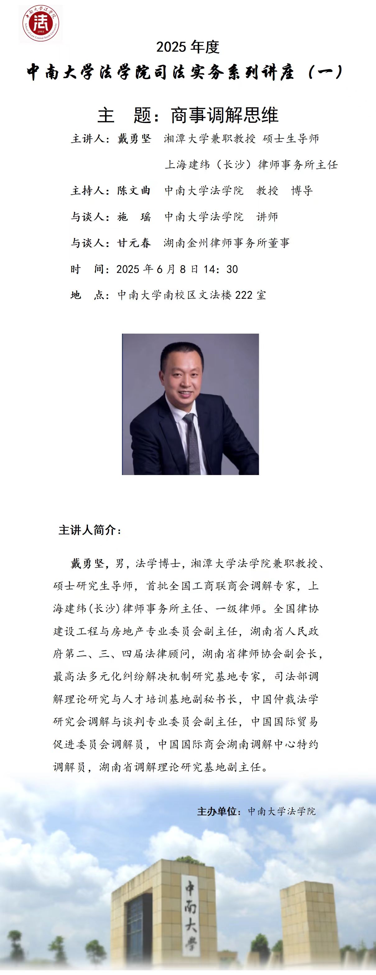 【讲座预告】司法实务系列讲座(一):戴勇坚:商事调解思维