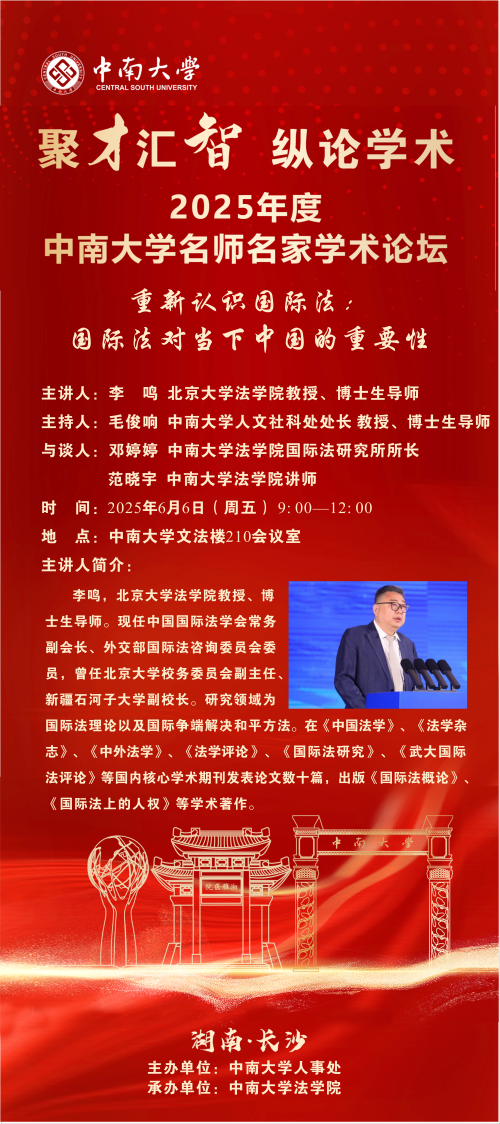 【讲座预告】李鸣:重新认识国际法:国际法对当下中国的重要性