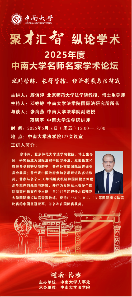 【讲座预告】廖诗评:域外管辖、长臂管辖、经济制裁与法律战