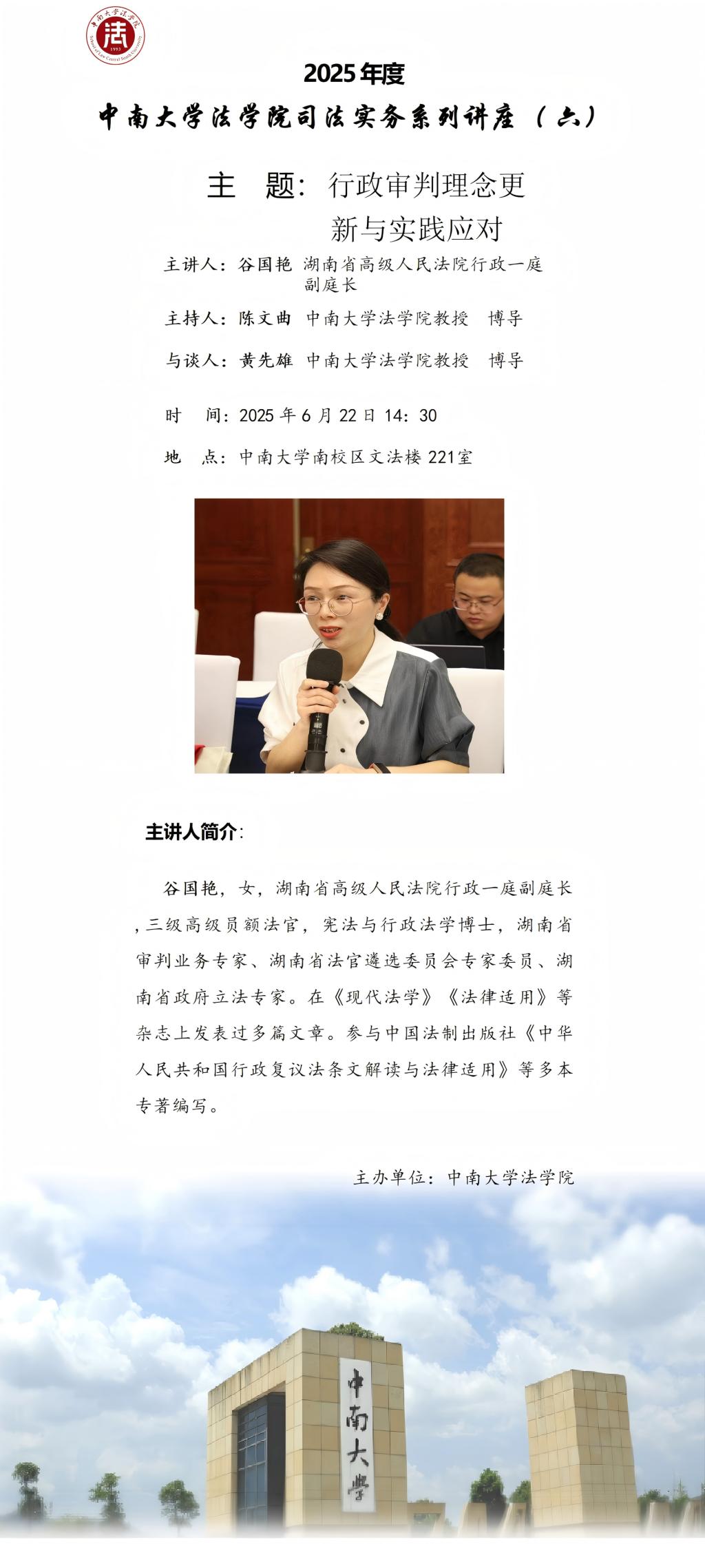 【讲座预告】司法实务系列讲座(六):谷国艳:行政审判理念更新与实践应对