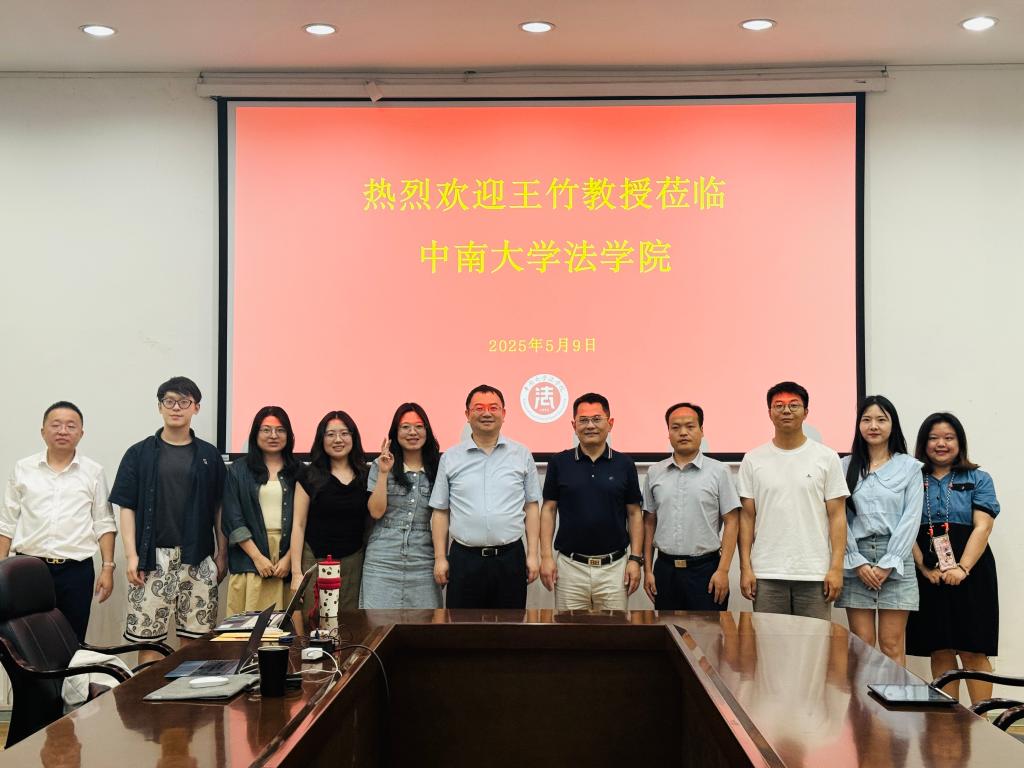 2025年5月9日晚,四川大学法学院二级教授、博士生导师、《法学研究》作者、国家级青年人才王竹教授应邀做客中南大学“名师名家学术论坛”,在法学院文法楼210会议室带来题为《人工智能时代的信用权保护规则》的专题讲座。讲座由中南大学法学院院长许中缘教授主持,法学院陈范宏特聘副教授、夏沁副教授、郭壬癸讲师、范沁宁讲师担任与谈人,法学院众多师生现场聆听并积极参与讨论。