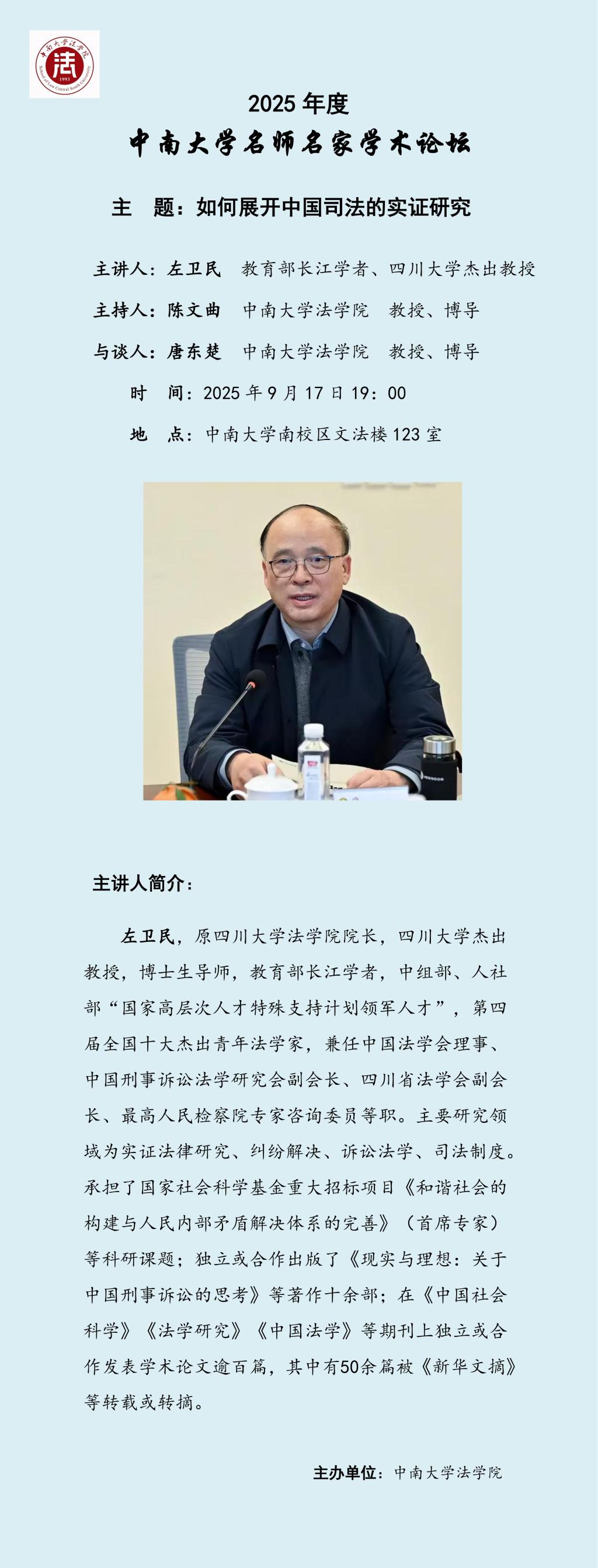 【讲座预告】左卫民:如何展开中国司法的实证研究