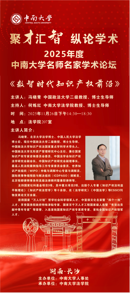 【讲座预告】冯晓青:数智时代知识产权前沿