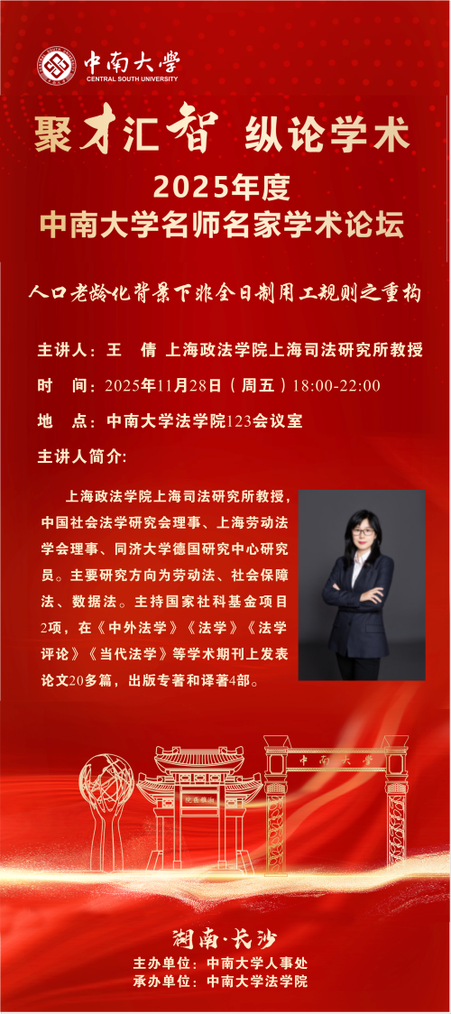 【讲座预告】王倩:人口老龄化背景下非全日制用工规则之重构