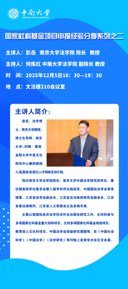 【讲座预告】彭岳:国家社科基金项目申报经验分享系列之二
