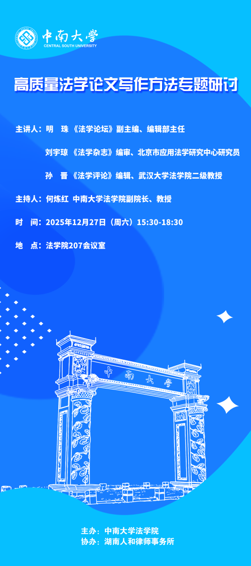 【讲座预告】高质量法学论文写作方法专题研讨