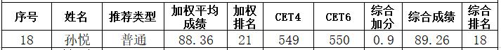 根据学校通知,我院新增一个推荐免试攻读研究生资格名额,按照此前确定的推免成绩及被推免人本人意愿,顺延至孙悦同学。